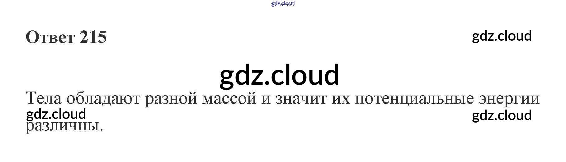 Ответ на задание 215 Рабочая тетрадь Физика за 7 (седьмой) класс Пурышева, Важеевская 2018