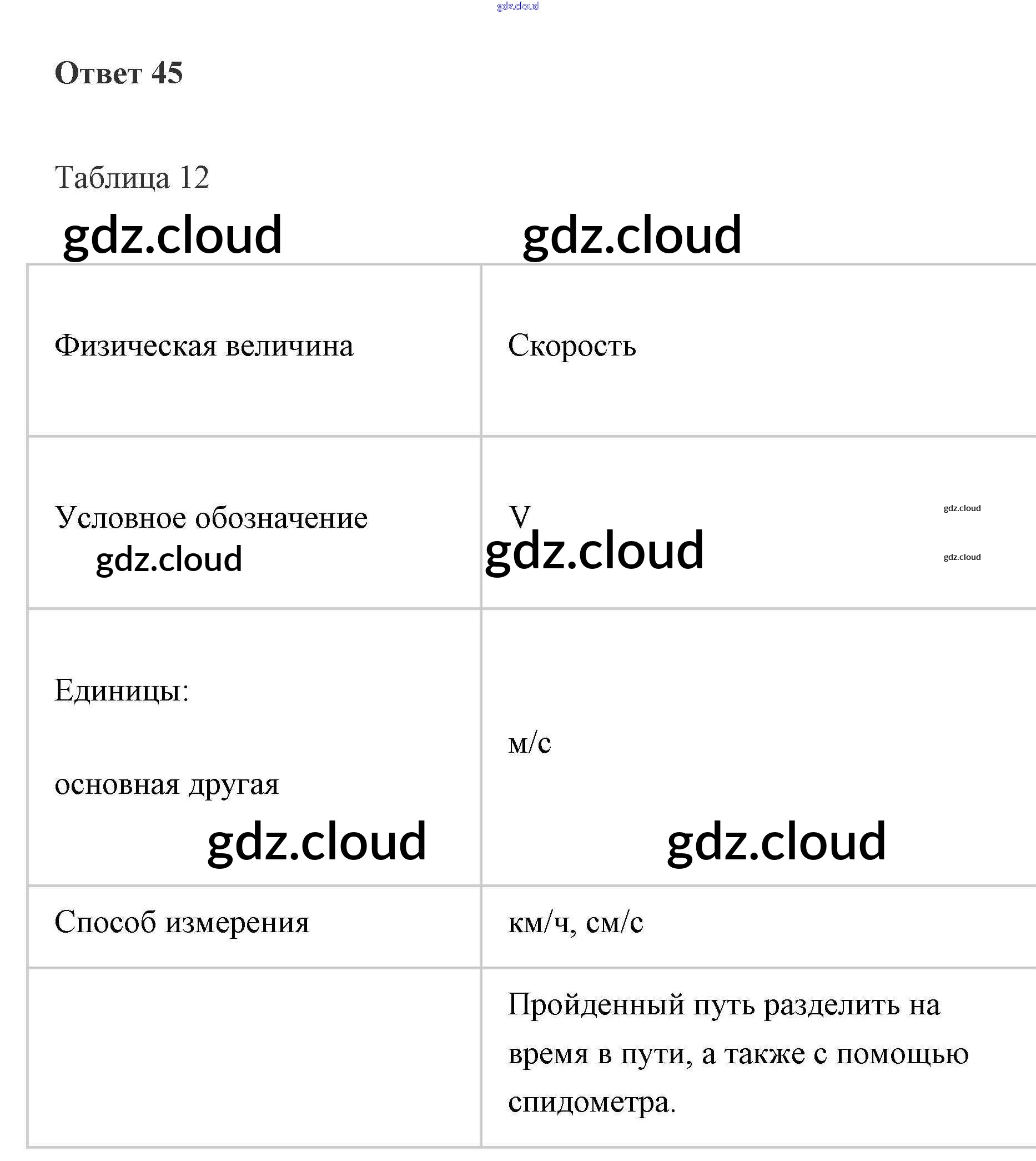 Ответ на задание 45 Рабочая тетрадь Физика за 7 (седьмой) класс Пурышева, Важеевская 2018