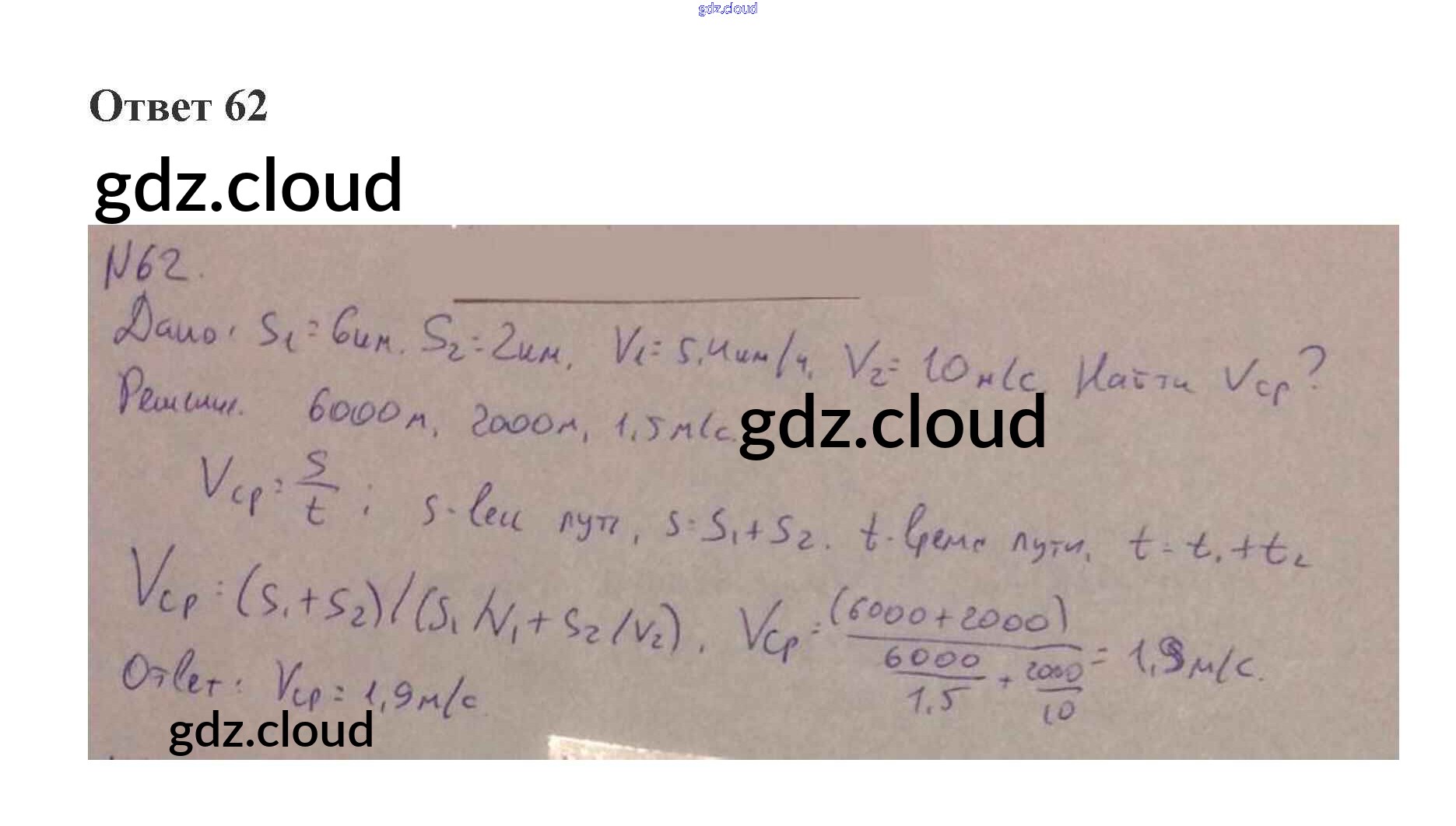 Ответ на задание 62 Рабочая тетрадь Физика за 7 (седьмой) класс Пурышева, Важеевская 2018