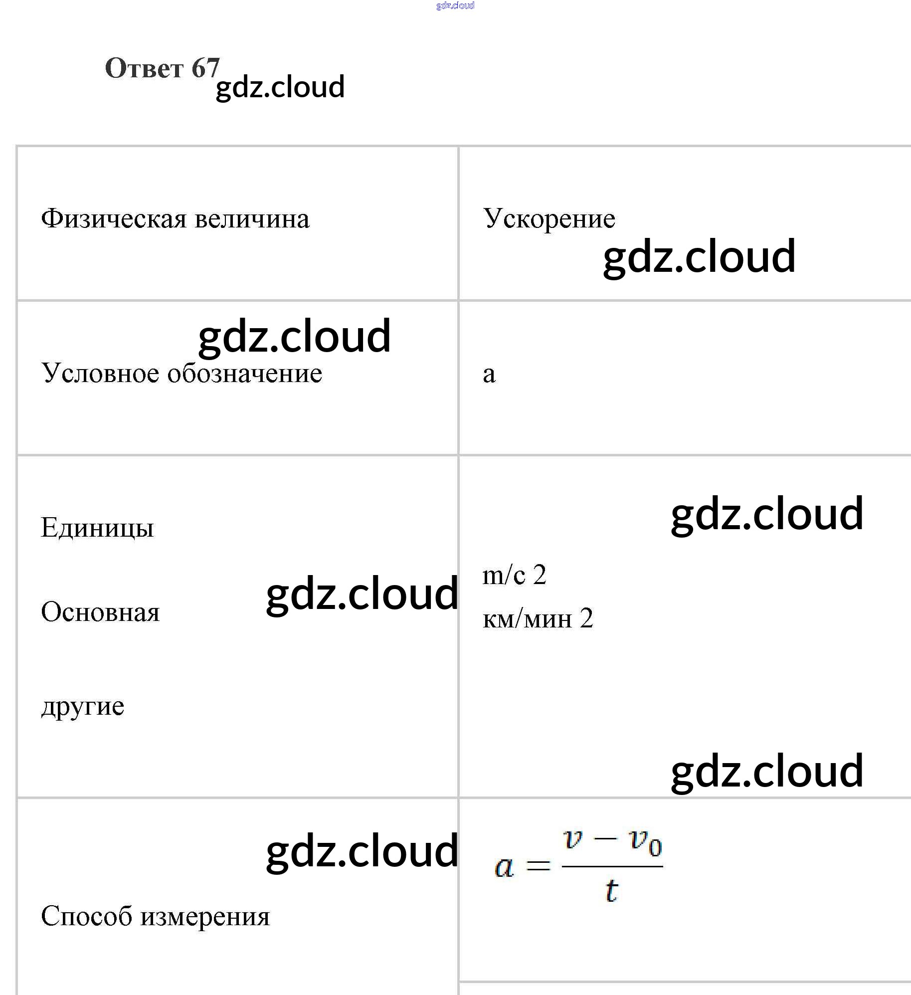Ответ на задание 67 Рабочая тетрадь Физика за 7 (седьмой) класс Пурышева, Важеевская 2018