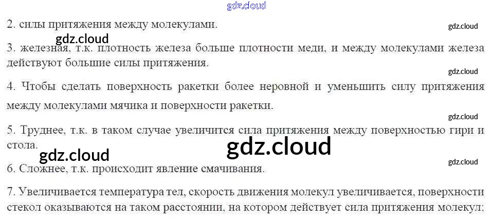 Ответы к главе 1. Первоначальные сведения о строении вещества по Физике 7 класс Рабочая тетрадь Касьянов Вертикаль Дрофа