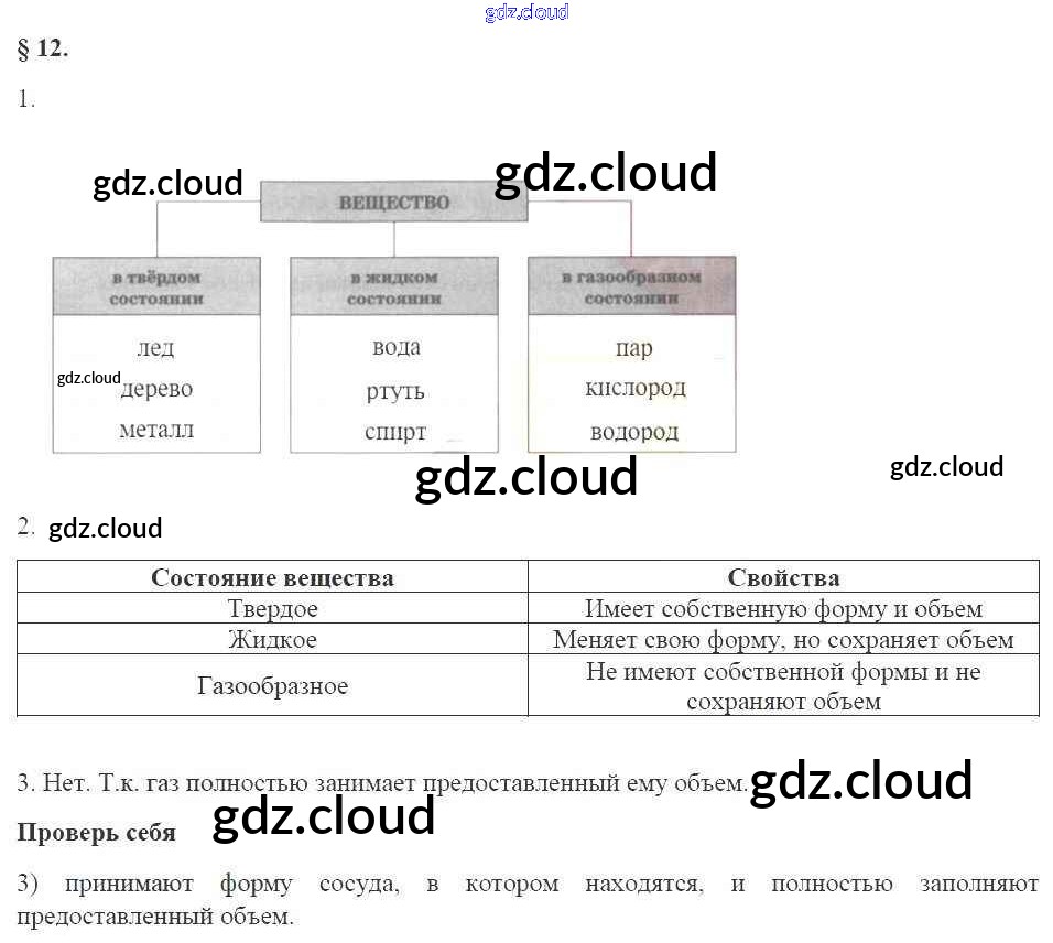 Ответы к главе 1. Первоначальные сведения о строении вещества по Физике 7 класс Рабочая тетрадь Касьянов Вертикаль Дрофа