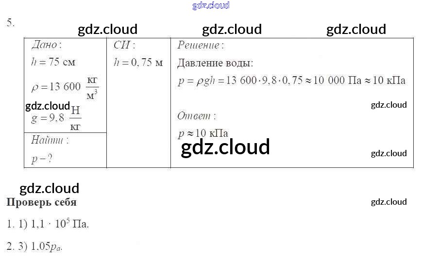 Ответы к главе 3. Давление твердых тел, жидкостей и газов по Физике 7 класс Рабочая тетрадь Касьянов Вертикаль Дрофа
