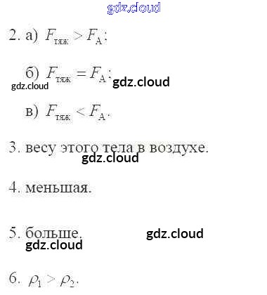 Ответы к главе 3. Давление твердых тел, жидкостей и газов по Физике 7 класс Рабочая тетрадь Касьянов Вертикаль Дрофа