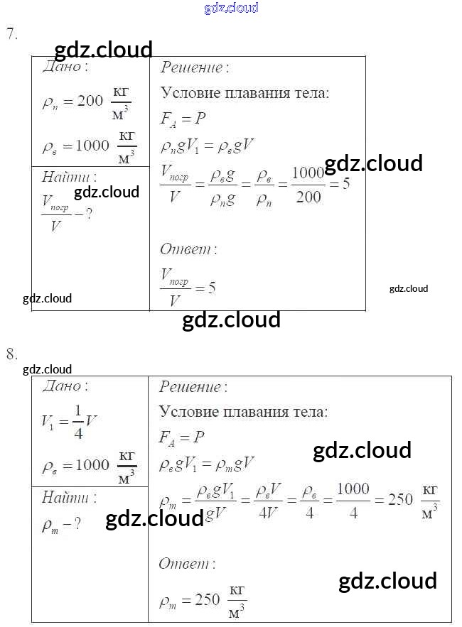 Ответы к главе 3. Давление твердых тел, жидкостей и газов по Физике 7 класс Рабочая тетрадь Касьянов Вертикаль Дрофа