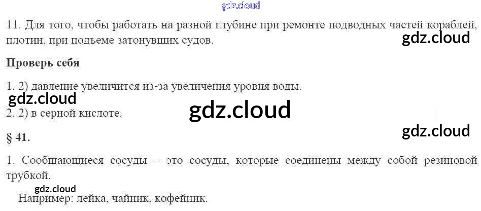 Ответы к главе 3. Давление твердых тел, жидкостей и газов по Физике 7 класс Рабочая тетрадь Касьянов Вертикаль Дрофа