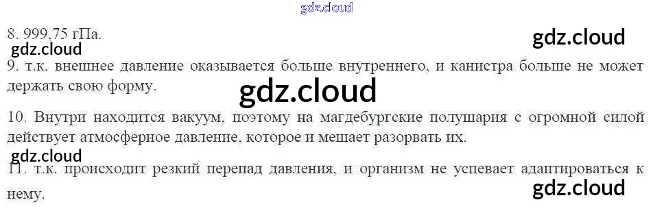 Ответы к главе 3. Давление твердых тел, жидкостей и газов по Физике 7 класс Рабочая тетрадь Касьянов Вертикаль Дрофа