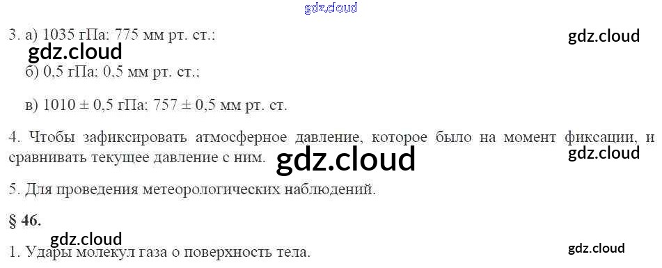 Ответы к главе 3. Давление твердых тел, жидкостей и газов по Физике 7 класс Рабочая тетрадь Касьянов Вертикаль Дрофа