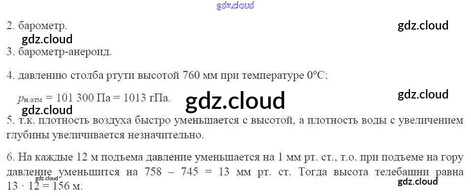 Ответы к главе 3. Давление твердых тел, жидкостей и газов по Физике 7 класс Рабочая тетрадь Касьянов Вертикаль Дрофа