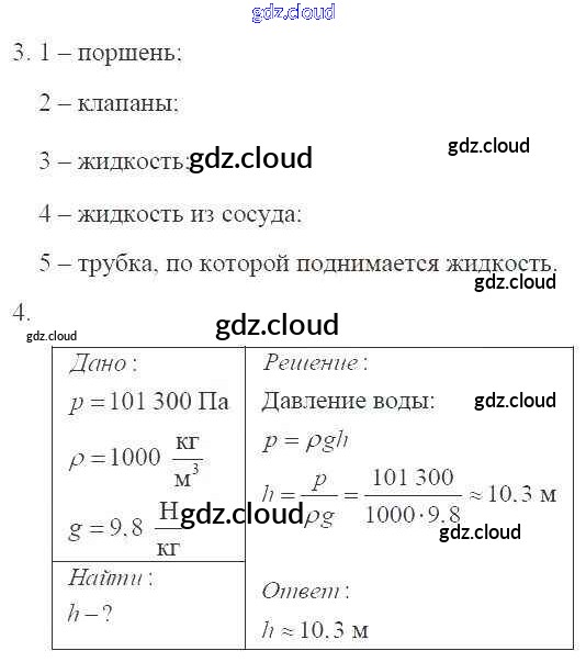 Ответы к главе 3. Давление твердых тел, жидкостей и газов по Физике 7 класс Рабочая тетрадь Касьянов Вертикаль Дрофа