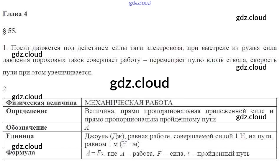 Ответы к главе 4. Работа и мощность. Энергия по Физике 7 класс Рабочая тетрадь Касьянов Вертикаль Дрофа