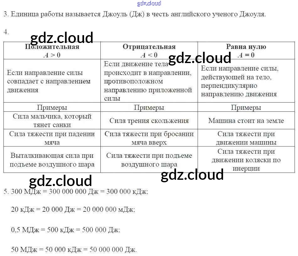 Ответы к главе 4. Работа и мощность. Энергия по Физике 7 класс Рабочая тетрадь Касьянов Вертикаль Дрофа