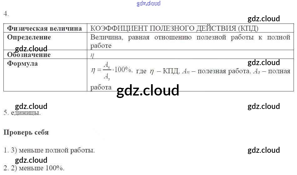 Ответы к главе 4. Работа и мощность. Энергия по Физике 7 класс Рабочая тетрадь Касьянов Вертикаль Дрофа