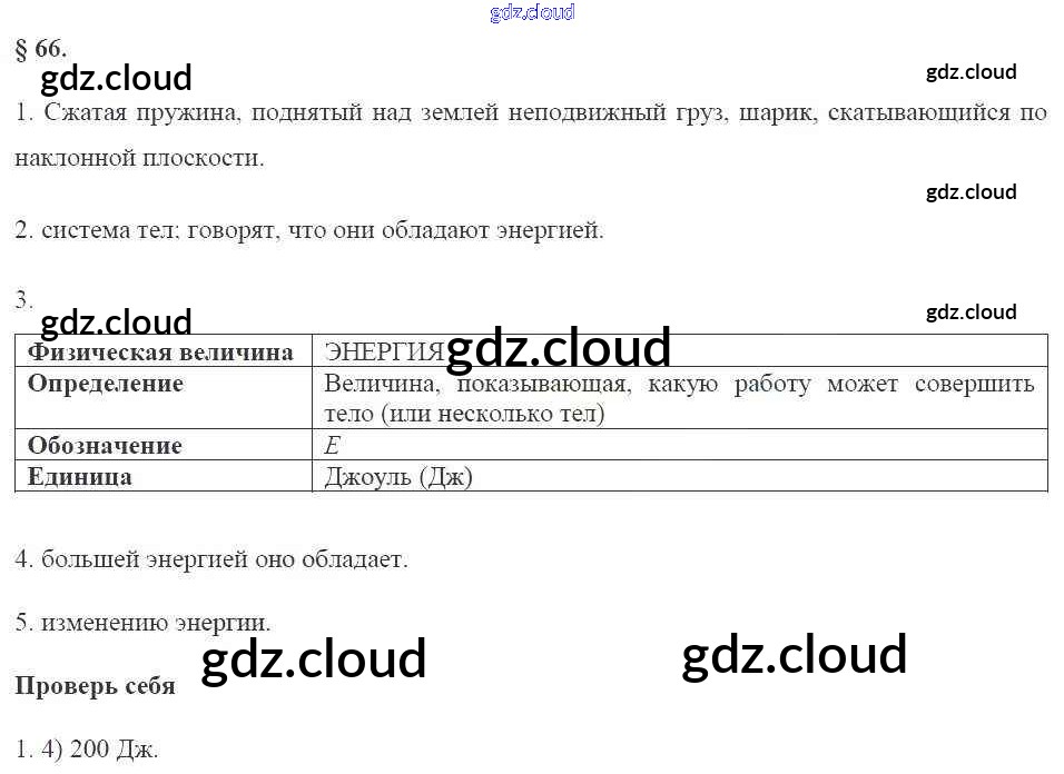 Ответы к главе 4. Работа и мощность. Энергия по Физике 7 класс Рабочая тетрадь Касьянов Вертикаль Дрофа