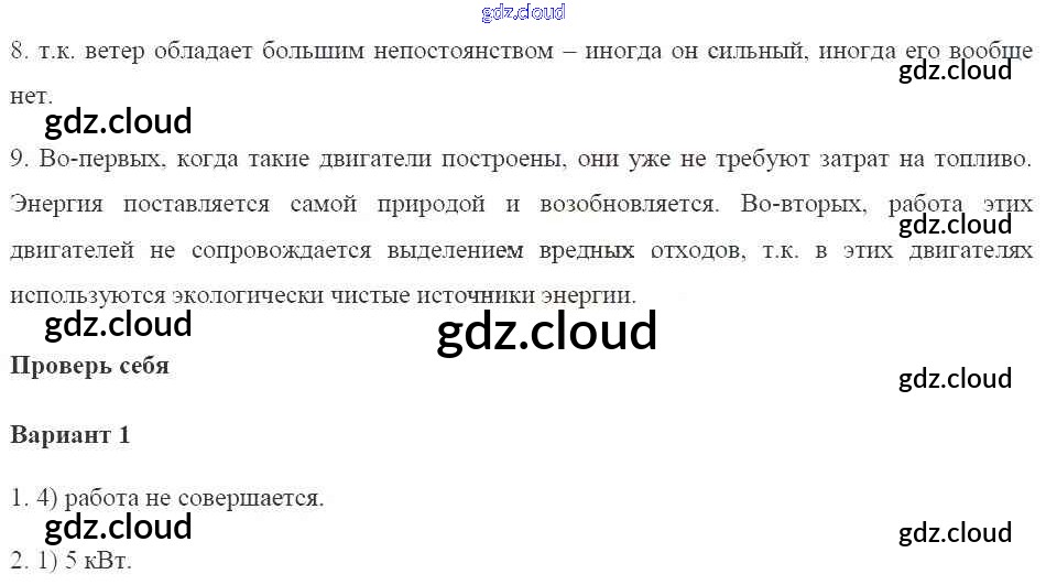 Ответы к главе 4. Работа и мощность. Энергия по Физике 7 класс Рабочая тетрадь Касьянов Вертикаль Дрофа