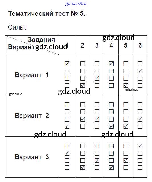 Ответ на задание Тематический тест-5 Тесты Физика за 7 (седьмой) класс Ханнанов, Ханнанова Вертикаль 2017 ФГОС онлайн и без номера телефона.