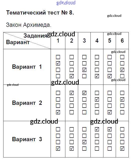 Ответ на задание Тематический тест-8 Тесты Физика за 7 (седьмой) класс Ханнанов, Ханнанова Вертикаль 2017 ФГОС онлайн и без номера телефона.