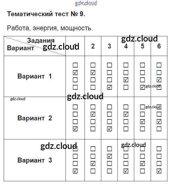 Ответ на задание Тематический тест-9 Тесты Физика за 7 (седьмой) класс Ханнанов, Ханнанова Вертикаль 2017 ФГОС онлайн и без номера телефона.