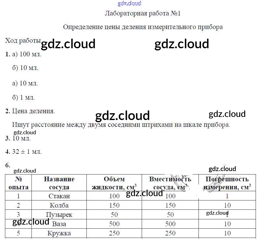 Ответ на задание ЛР №1. Определение цены деления измерительного прибора Тетрадь для лабораторных работ Физика за 7 (седьмой) класс Минькова, Иванова УМК 2017