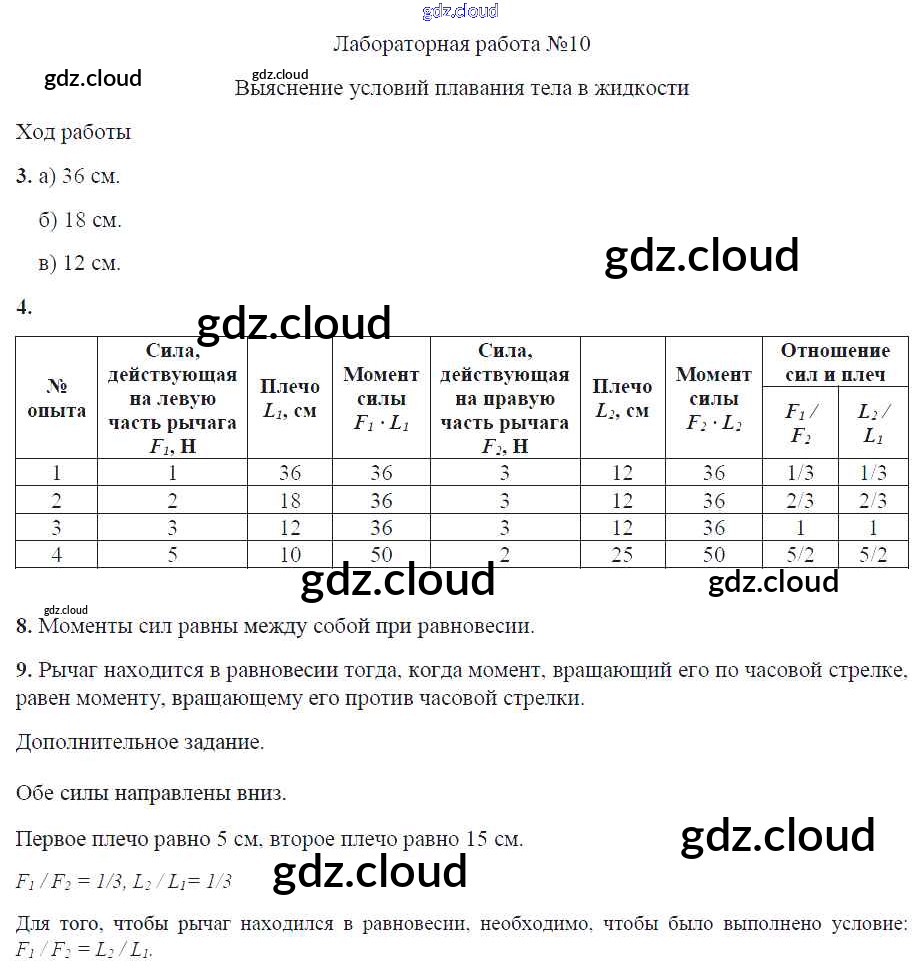 Ответ на задание ЛР №10. Выяснение условия равновесия рычага Тетрадь для лабораторных работ Физика за 7 (седьмой) класс Минькова, Иванова УМК 2017