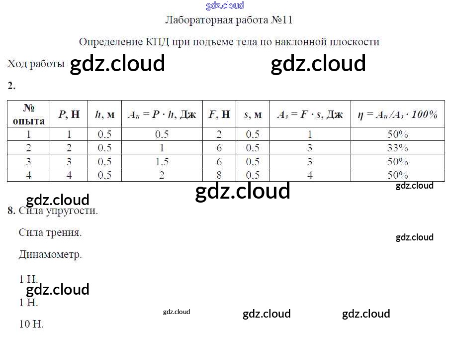 Ответ на задание ЛР №11. Определение КПД при подъеме тела по наклонной плоскости Тетрадь для лабораторных работ Физика за 7 (седьмой) класс Минькова, Иванова УМК 2017