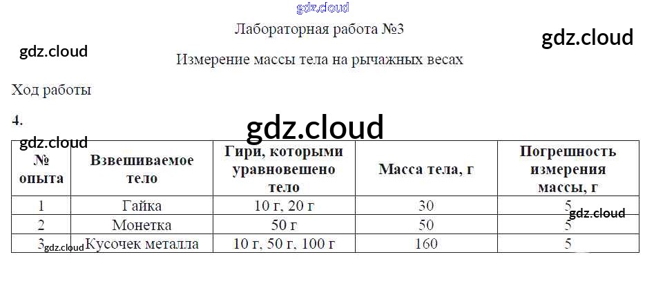 Ответ на задание ЛР №3. Измерение массы тела на рычажных весах Тетрадь для лабораторных работ Физика за 7 (седьмой) класс Минькова, Иванова УМК 2017