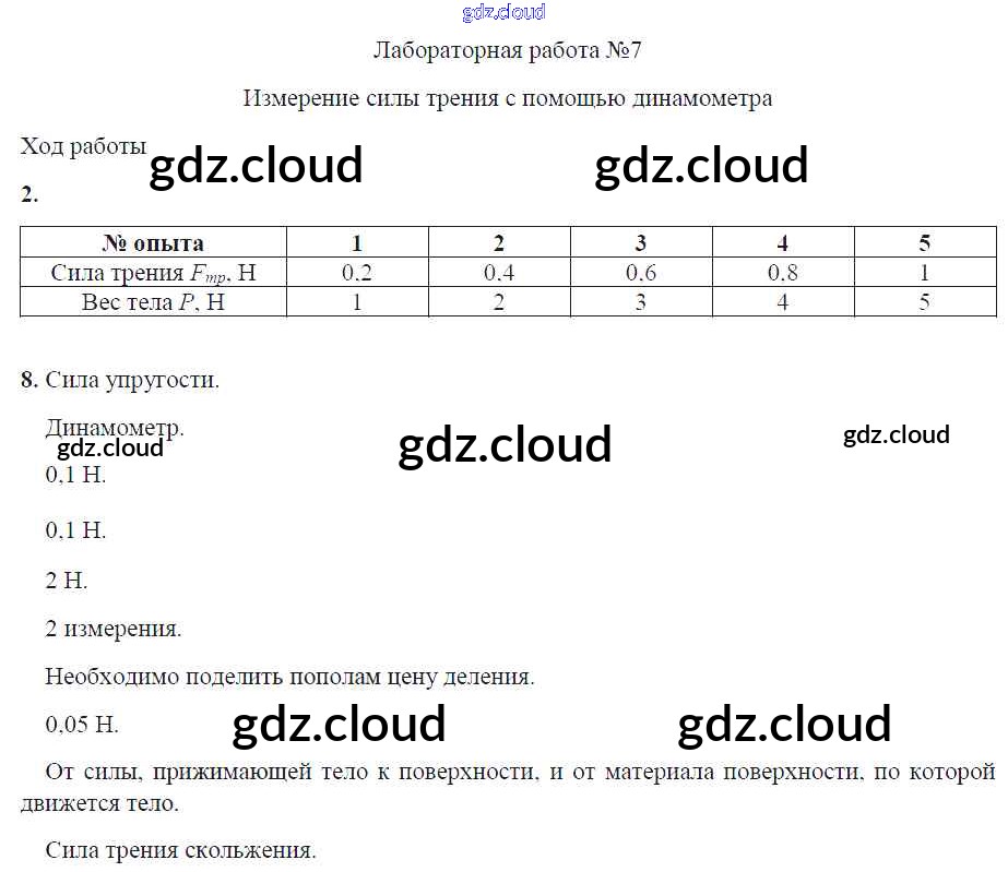 Ответ на задание ЛР №7. Измерение силы трения с помощью динамометра Тетрадь для лабораторных работ Физика за 7 (седьмой) класс Минькова, Иванова УМК 2017