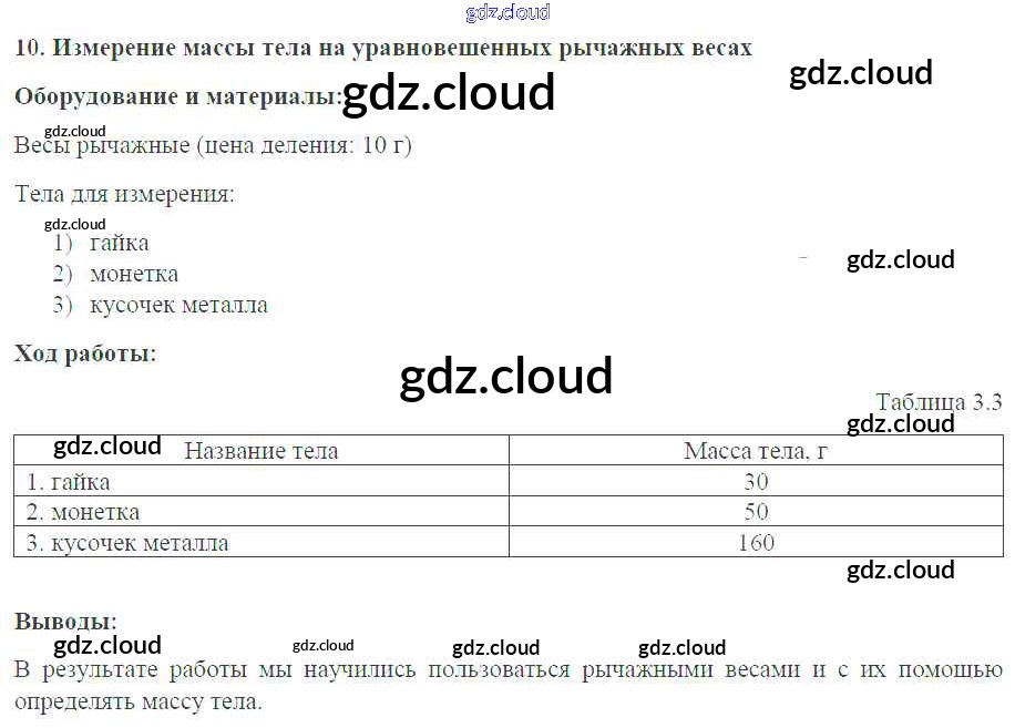 Ответ на задание №10. Измерение массы тела на уравновешенных рычажных весах Тетрадь-практикум Физика за 7 (седьмой) класс Белага, Воронцова, Жумаев, Ломаченков, Панебратцев Сферы 2012