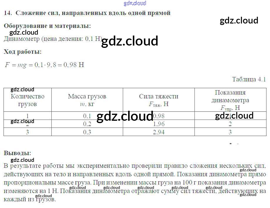 Ответ на задание №14. Сложение сил, направленных вдоль одной прямой Тетрадь-практикум Физика за 7 (седьмой) класс Белага, Воронцова, Жумаев, Ломаченков, Панебратцев Сферы 2012