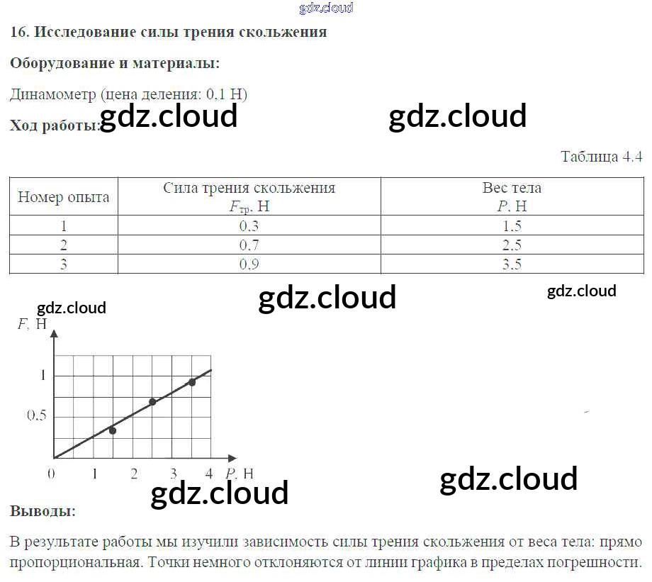 Ответ на задание №16. Исследование силы трения скольжения Тетрадь-практикум Физика за 7 (седьмой) класс Белага, Воронцова, Жумаев, Ломаченков, Панебратцев Сферы 2012