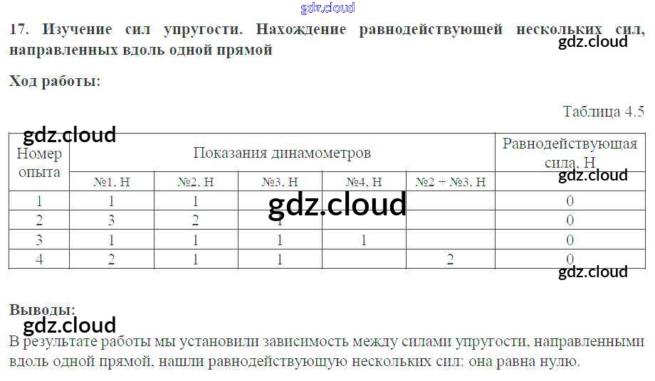 Ответ на задание №17. Изучение сил упругости Тетрадь-практикум Физика за 7 (седьмой) класс Белага, Воронцова, Жумаев, Ломаченков, Панебратцев Сферы 2012