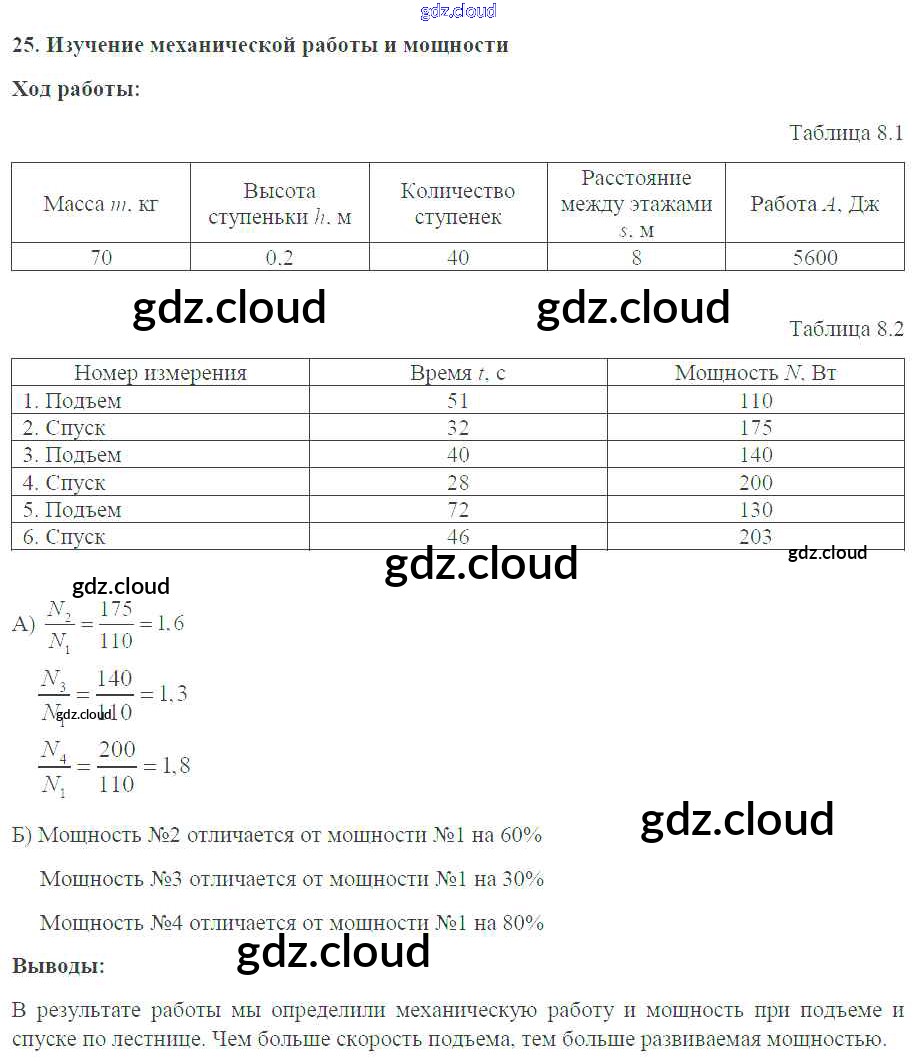 Ответ на задание №25. Изучение механической работы и мощности Тетрадь-практикум Физика за 7 (седьмой) класс Белага, Воронцова, Жумаев, Ломаченков, Панебратцев Сферы 2012