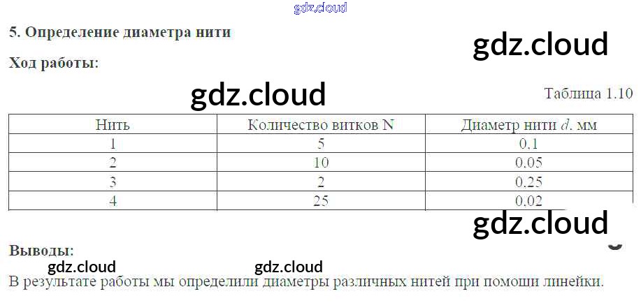 Ответ на задание №5. Определение диаметра нити Тетрадь-практикум Физика за 7 (седьмой) класс Белага, Воронцова, Жумаев, Ломаченков, Панебратцев Сферы 2012
