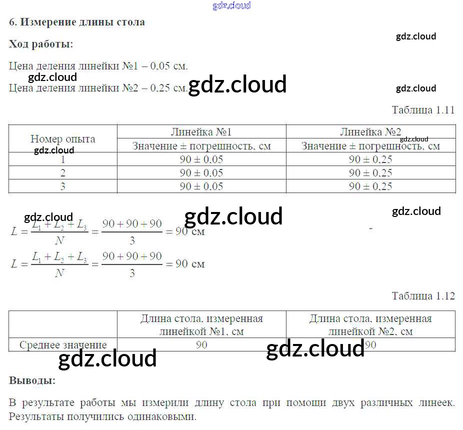 Ответ на задание №6. Измерение длины стола Тетрадь-практикум Физика за 7 (седьмой) класс Белага, Воронцова, Жумаев, Ломаченков, Панебратцев Сферы 2012