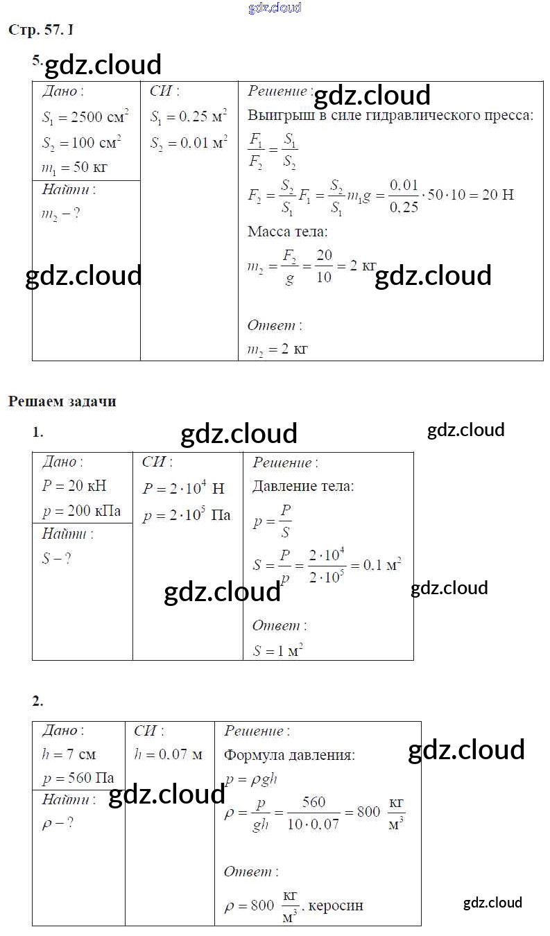 Ответы к главе 5. Давление твёрдых тел, жидкостей и газов по Физике 7 класс Тетрадь-тренажер Артеменков Сферы Просвещение
