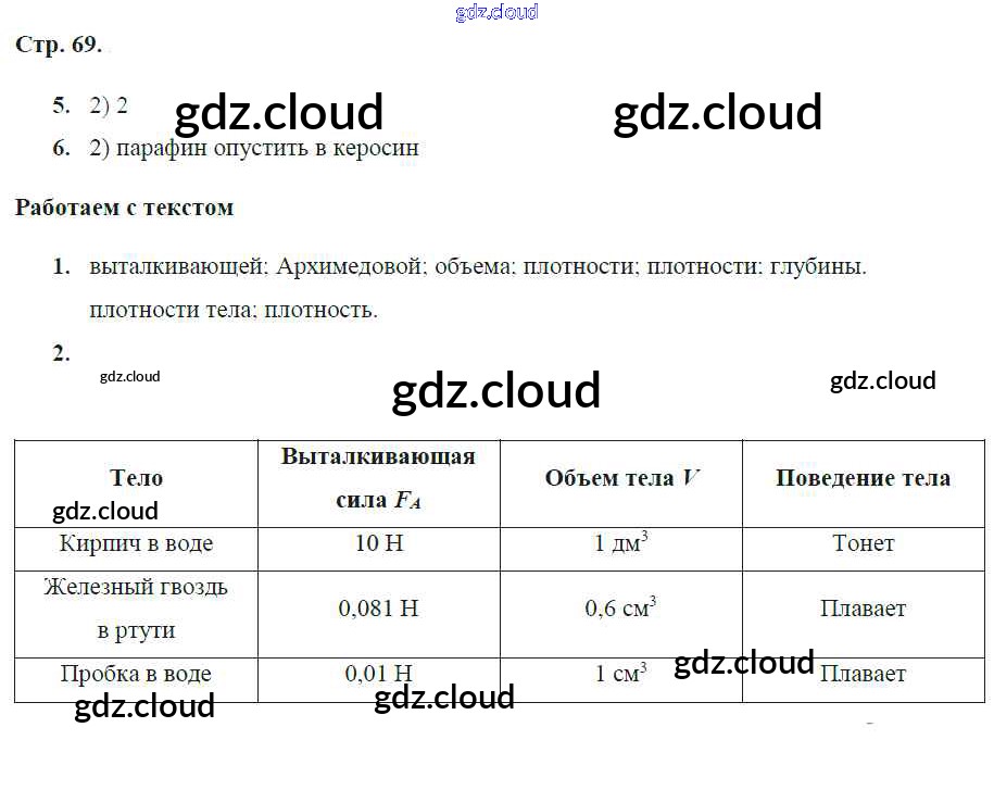 Ответ на задание стр.69 Тетрадь-тренажер Физика за 7 (седьмой) класс Артеменков, Белага, Воронцова, Ломаченков, Панебратцев Сферы 2016