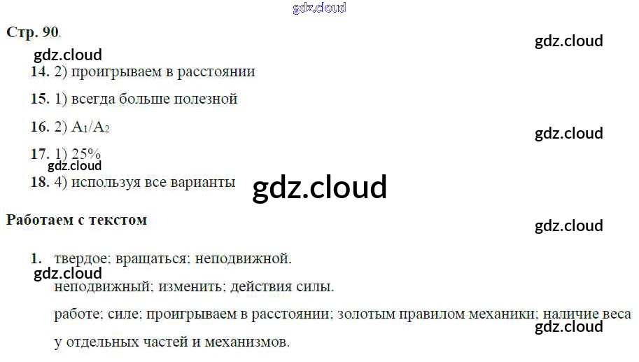 Ответы к главе 9. Простые механизмы. "Золотое правило" механики по Физике 7 класс Тетрадь-тренажер Артеменков Сферы Просвещение