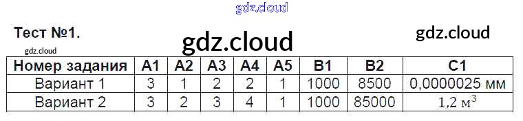 Ответ на задание Тест-1 Контрольно-измерительные материалы (КИМ) Физика за 7 (седьмой) класс Зорин 2017 ФГОС онлайн и без номера телефона.