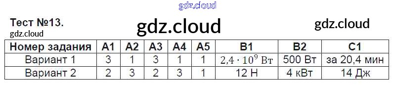 Ответ на задание Тест-13 Контрольно-измерительные материалы (КИМ) Физика за 7 (седьмой) класс Зорин 2017 ФГОС онлайн и без номера телефона.