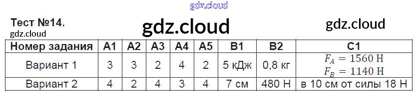 Ответ на задание Тест-14 Контрольно-измерительные материалы (КИМ) Физика за 7 (седьмой) класс Зорин 2017 ФГОС онлайн и без номера телефона.