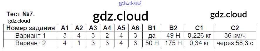 Ответ на задание Тест-7 Контрольно-измерительные материалы (КИМ) Физика за 7 (седьмой) класс Зорин 2017 ФГОС онлайн и без номера телефона.