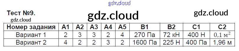 Ответ на задание Тест-9 Контрольно-измерительные материалы (КИМ) Физика за 7 (седьмой) класс Зорин 2017 ФГОС онлайн и без номера телефона.