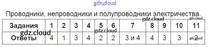 Ответ на задание 6. Проводники, непроводники и полупроводники электричества Тесты Физика за 8 (восьмой) класс Чеботарева УМК 2017