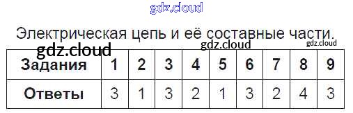Ответ на задание 8. Электрическая цепь и её составные части Тесты Физика за 8 (восьмой) класс Чеботарева УМК 2017