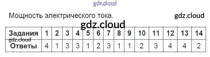 Ответ на задание 12. Мощность электрического тока Тесты Физика за 8 (восьмой) класс Чеботарева УМК 2017