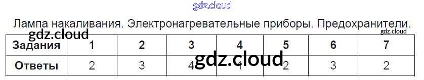 Ответ на задание 15. Предохранители. Лампа накаливания. Электронагревательные приборы Тесты Физика за 8 (восьмой) класс Чеботарева УМК 2017