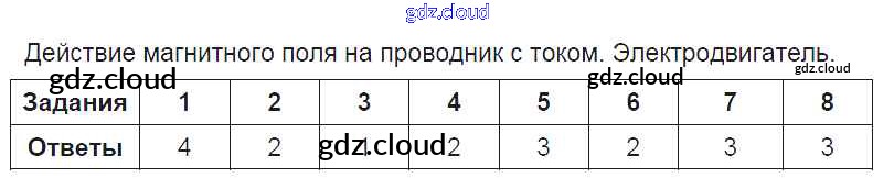 Ответ на задание 5. Электродвигатель. Действие магнитного поля на проводник с током Тесты Физика за 8 (восьмой) класс Чеботарева УМК 2017