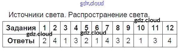 Ответ на задание 1. Источники света. Распространение света Тесты Физика за 8 (восьмой) класс Чеботарева УМК 2017