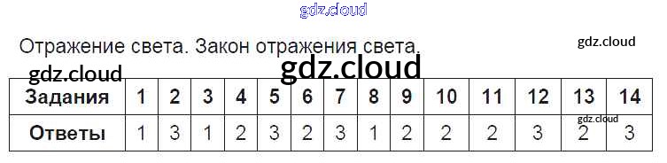 Ответ на задание 3. Отражение света. Закон отражения света Тесты Физика за 8 (восьмой) класс Чеботарева УМК 2017