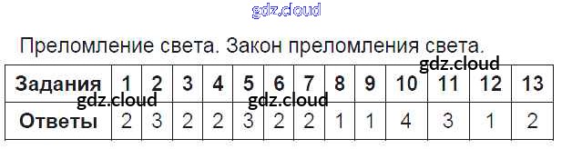 Ответ на задание 5. Преломление света. Закон преломления света Тесты Физика за 8 (восьмой) класс Чеботарева УМК 2017